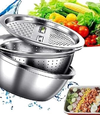 3Pcs Stainless Steel Drain Basket Kitchen Grater Multifunctional Vegetable Cutter Slicer Washing Filter Bowl With Drain Basin
