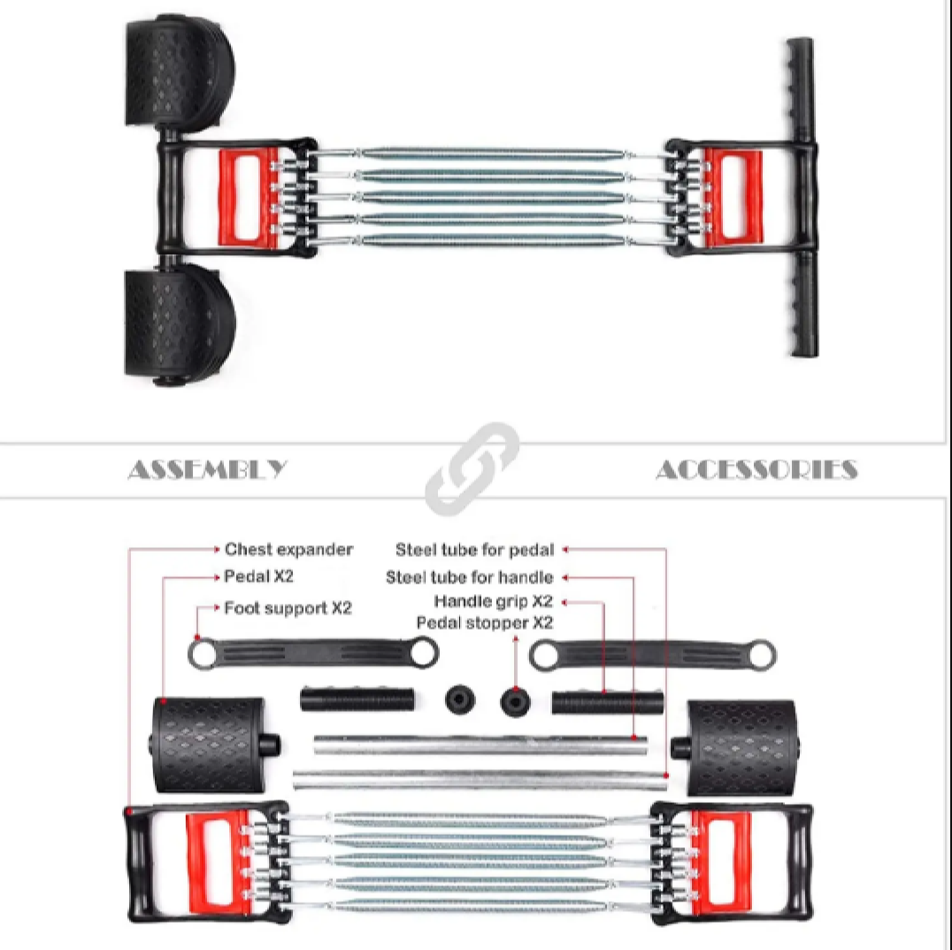 Take your workout to the next level with the Multi Function Chest Pull Expander – the ultimate fitness tool for building strength, endurance, and flexibility. Designed in sleek black and silver, this expander is perfect for home workouts, gym training, and travel-friendly fitness routines.